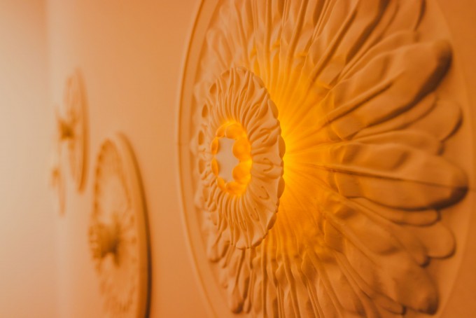 Wystawa czasowa "Łazienki w zachwycie" w Podchorążówce została zaprojektowana tak, aby można było poznawać ją wieloma zmysłami - wzrokiem, słuchem, dotykiem i węchem. Wyjątkowym punktem wystawy jest instalacja Jana Pfeifera "Zobaczyć niezauważalne", czyli rekonstrukcje ornamentalnych rozet z pałacowych sufitów, wykonane w technologii druku 3D i wzbogacone o elementy świetlne. Zwiedzający mogą dotykać wypukłych ornamentów i detali żyrandola z Antyszambru w Pałacu na Wyspie, które po kontakcie rozświetlają się ciepłym, złotym światłem. Artysta zaprasza do odkrywania sztuki nie tylko oczami, lecz także przez dotyk i wyobraźnię.