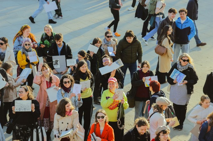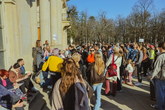 Ponad 200 osób wzięło udział w spontanicznej akcji rysunkowej "Wielkie szkicowanie", która 14 marca 2026 r. odbyła się na tarasie Pałacu na Wyspie. Wydarzenie towarzyszyło finisażowi wystawy czasowej "Łazienki w zachwycie".