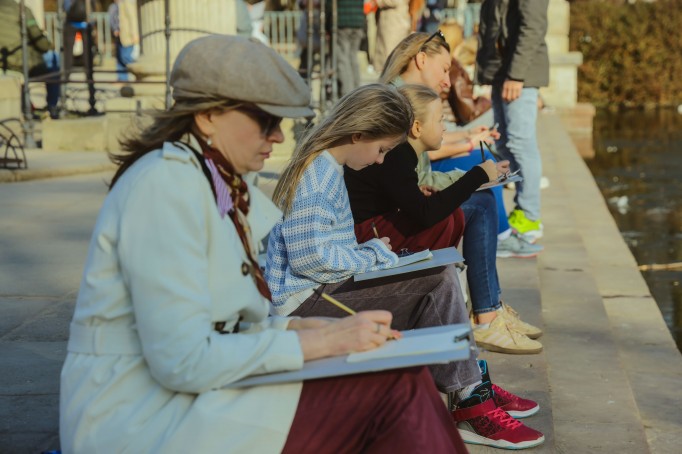 Setki osób ze szkicownikami w rękach sprawiły, że taras Pałacu na Wyspie zmienił się w wielką pracownię pod gołym niebem. W akcji mógł wziąć udział każdy, nie trzeba było być artystą. Wystarczyła jedynie chęć zanurzenia się w atmosferze miejsca, które inspiruje od stuleci, niezależnie od wieku i umiejętności. Wydarzenie prowadziła Zofia Zaccaria, malarka i ilustratorka, jedna z kuratorek wystawy czasowej "Łazienki w zachwycie".