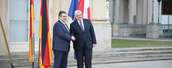 Ministrowie spraw zagranicznych Polski i Niemiec, Witold Waszczykowski i Sigmar Gabriel, spotkali się 8 marca 2017 r. w Pałacu na Wyspie. Rozmawiali m.in. o reformie Unii Europejskiej.