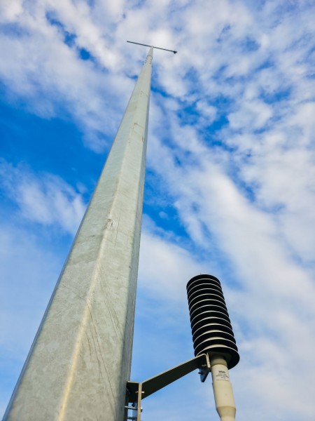 Zainstalowany na maszcie wiatromierz przesyła informacje o tym, jaka jest prędkość
