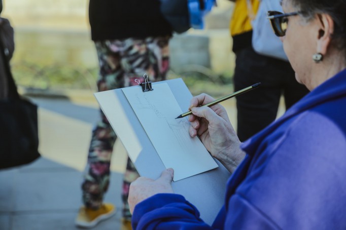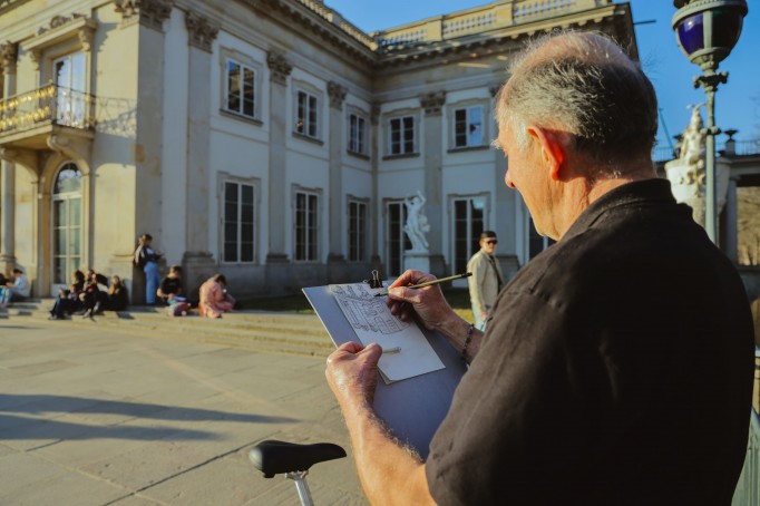 Setki osób ze szkicownikami w rękach sprawiły, że taras Pałacu na Wyspie zmienił się w wielką pracownię pod gołym niebem. W akcji mógł wziąć udział każdy, nie trzeba było być artystą. Wystarczyła jedynie chęć zanurzenia się w atmosferze miejsca, które inspiruje od stuleci, niezależnie od wieku i umiejętności. Wydarzenie prowadziła Zofia Zaccaria, malarka i ilustratorka, jedna z kuratorek wystawy czasowej "Łazienki w zachwycie".