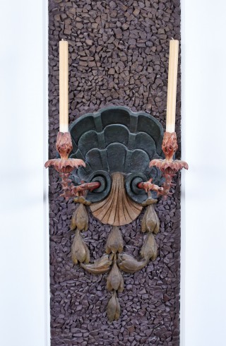 Kandelabr w formie kobiety trzymającej bukiety z lilii i hiacyntów