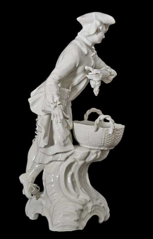 Dwie figurki porcelanowe winogrodników, mężczyzny i kobiety, z kiśćmi winogron w rękach, z koszami, stanowią bardzo rzadki przykład figurek tego typu. Zostały wykonane według modelu autorstwa Friedricha Eliasa Meyera I (1723‒1785), w KPM Königliche Porzellan-Manufaktur Berlin (manufaktura porcelany; 1763 ‒ ), w latach 1780‒1800 o czym świadczą sygnatury podszkliwne. Stanowią element kompletu figurek ukazujących cztery pory roku, z nieco odmiennymi atrybutami. Na komplet składają się figurki dwóch mężczyzn i dwóch kobiet. Mężczyźni personifikują Zimę i Jesień. Łazienkowska figurka ukazuje Jesień, mężczyzna w charakterystycznym skręcie trzyma w rękach kiście winogron. Kobiety personifikują Wiosnę i Lato. Łazienkowska figurka kobiety w geście i układzie tułowia odpowiada personifikacji Wiosny, ale zamiast pęków kwiatów w rękach trzyma, podobnie jak mężczyzna, kiście winogron. [A.Czarnecka]