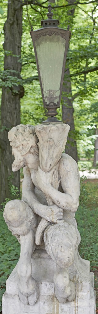 Jest jednym z czterech (a obecnie jedynym zachowanym) posągów satyrów, które w 1784 r. stanęły przy wejściach na mostki, prowadzące na taras południowy przed pałacem.