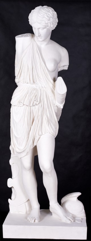 Popiersie rzymskiej Wenus, utożsamianej z grecką boginią miłości Afrodytą. Rzeźba najprawdopodobniej pochodzi z kolekcji rzeźb króla Stanisława Augusta (Catalogue des Ouvrages en Marbre, Platre, Terre cuite appartenant à Sa Majesté le Roi, 1795, nr zespołu 346, syg. 220, karta 72, nr 19). Jest to odlew gipsowy z marmurowego posągu Wenus Medici z Galerii Uffizi we Florencji (nr inw. 1914 n. 224). Pełno postaciowa rzeźba znana była już w XVI wieku, jednak na temat dokładnego miejsca i daty jej odkrycia nie ma wiedzy. Z pewnością w XVII wieku była eksponowana w Villi Medici w Rzymie. W tym czasie była również rozpowszechniana poprzez wydawnictwo poświęcone najpiękniejszym posągom starożytności, w którym Francois Perrier zilustrował Wenus kilkukrotnie („Segmenta nobilium signorum e statuaru: quæ temporis dentem inuidium euasere..., Rzym i Paryż 1638, [on-line]: https://archive.org/details/segmentanobilium00perr/page/n204/mode/2up). W 1677 roku za zgodą papież Innocentego XI (1611‒1689) rzeźba została przeniesiona do Florencji i od 1688 roku była prezentowana w Trybunie w Galerii Uffizi, stając się najpopularniejszym dziełem sztuki tego muzeum. W XIX wieku, za czasów Napoleona, opuściła Florencję, ale w 1815 roku powróciła na miejsce swej ekspozycji.
