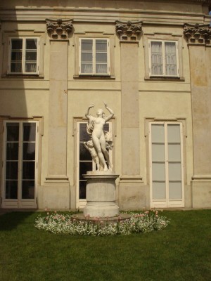 Za panowania króla Stanisława Augusta utrzymywano go w formie regularnych boskietów, które nie dotrwały do naszych czasów. Dziś dawny ogród w pobliżu Pałacu na Wyspie i Amfiteatru przypomina układ promienistych ścieżek ze strzyżonymi szpalerami. W środku, gdzie zbiegają się alejki, znajduje się placyk. Ustawiono na nim zakupioną przez króla rzeźbę Tankreda i Kloryndy. Jest to kopia; oryginał można zobaczyć w Puławach, w parku przy dawnej rezydencji Czartoryskich.