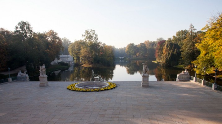 Zegar słoneczny przy fontannie na tarasie południowym Pałacu na Wyspie, w pobliżu stopni prowadzących do stawu. Został ustawiony w 1786 r., upamiętnia imieniny króla (8 maja). Sam Stanisław August dokładnie wyznaczył miejsce jego ulokowania.