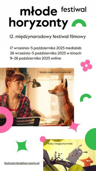 *12. Międzynarodowy Festiwal Filmowy Młode Horyzonty, największy festiwal filmowy dla młodej widowni, odbędzie się od 26 września do 5 października 2025 r. w kinach w całej Polsce, z głównymi lokalizacjami w Warszawie i we Wrocławiu, a także 9-26 października 2025 r. online. W programie: najciekawsze filmy animowane i aktorskie z całego świata wyświetlane premierowo w Polsce, filmy dostosowane do różnych grup wiekowych (przedszkola, szkoły), wydarzenia towarzyszące, takie jak dyskusje i spotkania z twórcami i aktorami oraz kreatywne warsztaty w przestrzeniach kinowych.
